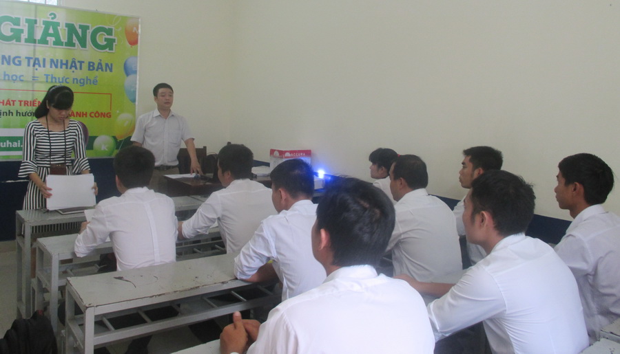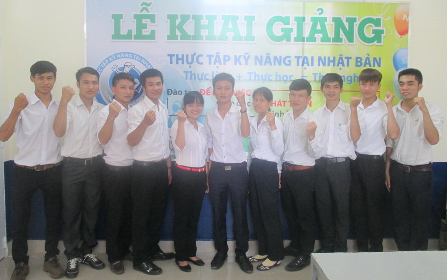 Trong lễ khai giảng các bạn học viên thể hiện sự quyết tâm và niềm vui khi tham gia chương trình Thực tập sinh Nhật Bản.