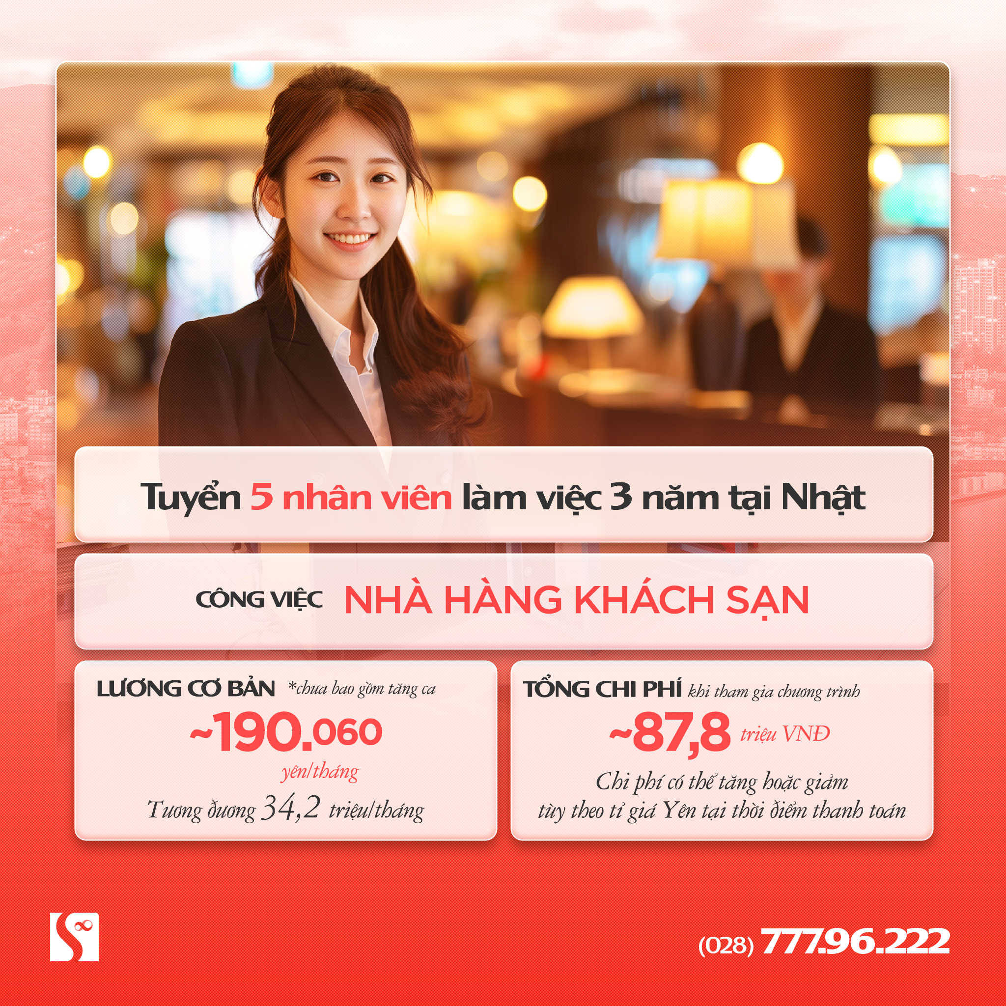 - Lương cơ bản: 175.000 Yen/tháng, tương đương 31,5 triệu/tháng